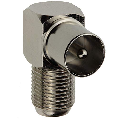 1STec 1 x Right Angled Screw Type Female Coaxial TV Socket with F-connector for 6mm RG6 CT100 WF100 Freeview Satellite Aerial Extension Wire to a Push on to Male UHF Coax Termination 90° Angle Adaptor