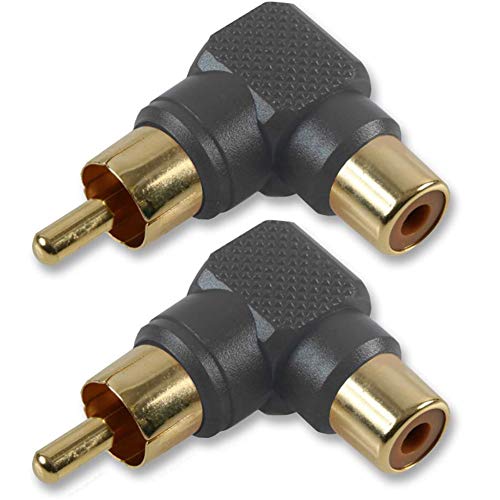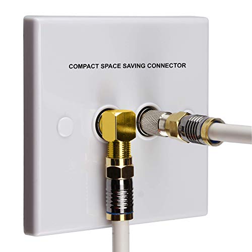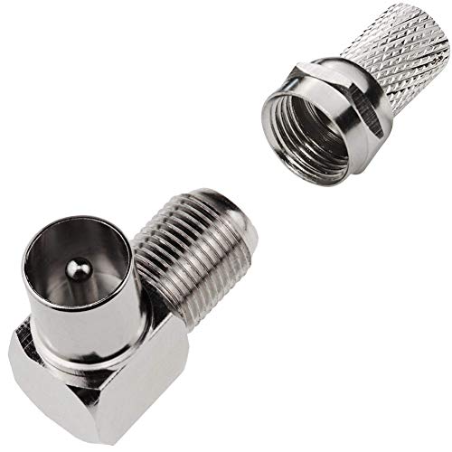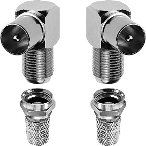 1STec 2 x Right Angled Male F-connector Adaptors to 90° Female Sockets for Sky Plus Digital Twin Shotgun Leads or Freesat Satellite Dish Main Aerial Cable with screw-on ends Set Top Wall Box Faceplate