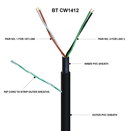 30m Genuine BT CW1412 2 Pair Black Down Lead Telephone Cable by 1STec. Supplied with Cable Clips + IDC Insertion Tool + Cable Grommets + Gel Crimps and Full Colour Instructions (30 Metre)