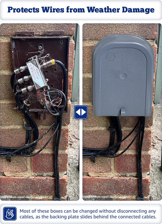 1STec Virgin Media Junction Box for Housing Telephone TV Superhub Modem Leads Electrical Connections on External Wall Joining 2/3 Way F-Connector Splitters to Main Outside Drop Wire (Small External)