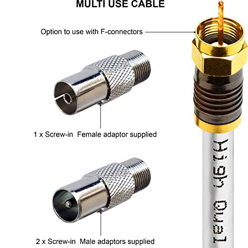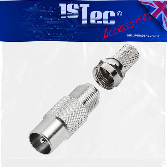 1STec 1 x Screw Type Male Coaxial TV Plug with Standard F-connector for 6mm RG6 CT100 WF100 Freeview Satellite Aerial Extension Wire to a Push in to Female UHF Coax Replacement Termination Adaptor