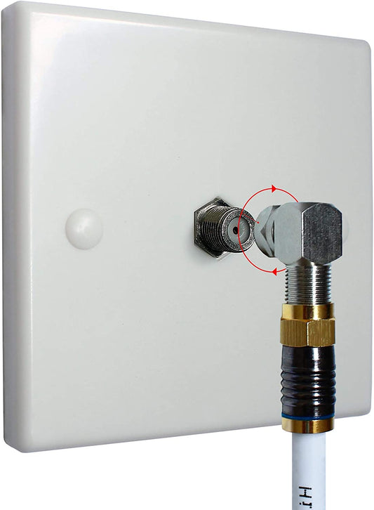 1STec 2 x Right Angled Male F-connector Adaptors to 90° Female Sockets for Sky Plus Digital Twin Shotgun Leads or Freesat Satellite Dish Main Aerial Cable with screw-on ends Set Top Wall Box Faceplate
